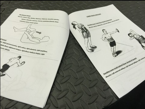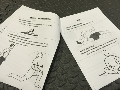 stretch, when we should not stretch, 4 types of stretching. From there she went into discussing the different stretches and muscles that were being Stretched. The group did a warmup before going into each stretch on the floor. Later the group broke into two groups and demos were done on the massage table and the group also demonstrated Myofascial release on the trigger point rollers and ball. (Maria)