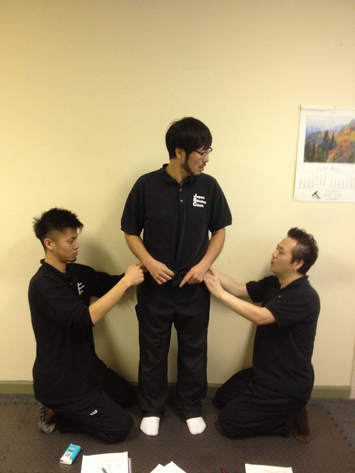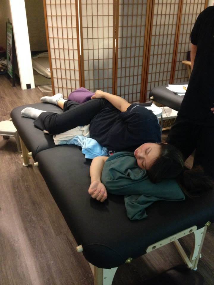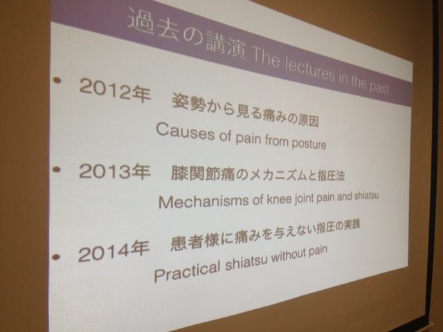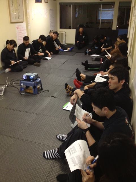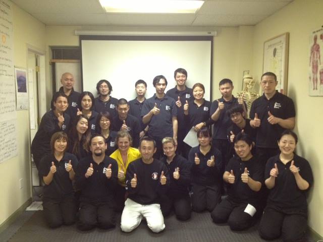 ‘Improvement of motion by approaching on muscle tissue’. At first he talked about the cause of pain, how it spreads, and conditions of muscles. Then he gave us explanations about how these muscle conditions occur, and what factors could cause the limitation of motion. We took a look at the popular conditions that clients often complain, figure out which factor could be applied, and thought about what kind of treatment could be effective. He also mentioned that treating only the area that the client feels pain is not effective. Treating from center of the body to distal part which is the movement of basic Shiatsu is important and effective. It was a great opportunity to learn different aspects of treatment. (Misuzu)