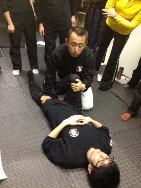worked at Japan Shiatsu clinic for 8 years until end of March. He shared the stiff neck treatment technique in spine position. He showed us the target muscles and then how to treat patients with stiff neck in spine position. After his demonstration, we all practiced each other. It looked easy when he showed us but it was difficult to handle the head and neck, and apply pressure appropriately on the target muscles. It requires practice and experience. It was a very good opportunity to learn his technique before he leaves. (Misuzu)