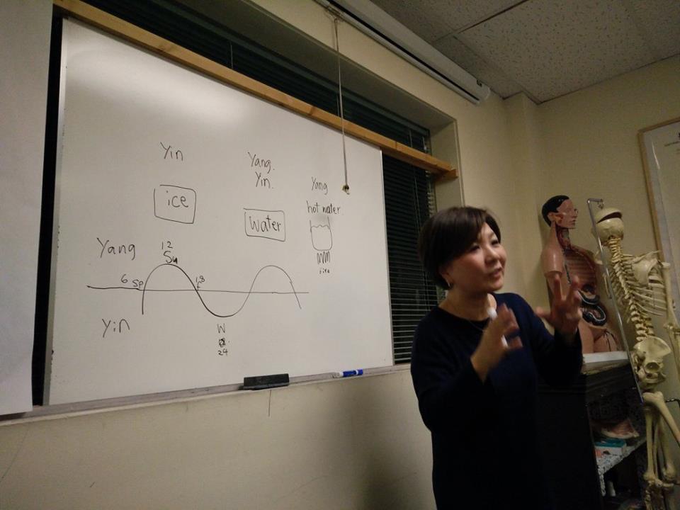 this time. She talked about what TCM is, basic theories such as Yin Yang, Five elements, and Eight principles and acupoints. Then she showed us some demonstrations. It was a great opportunity to learn different perspectives and techniques. (Misuzu)