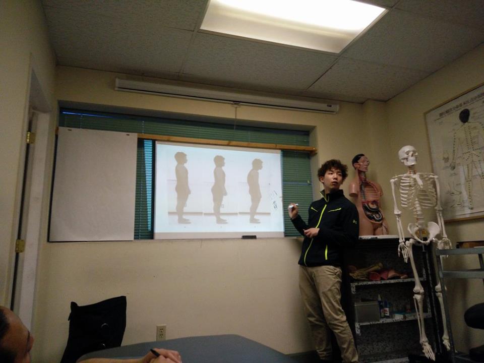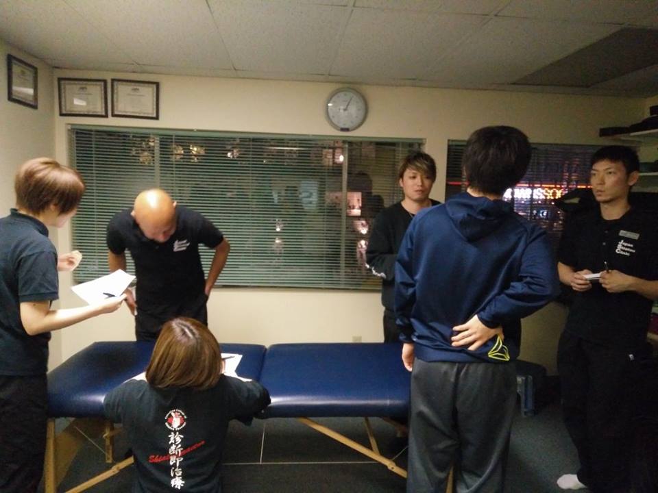 guest speaker this time!! He was involved in many sports teams and took care of athletes’ conditions in Japan. He talked about Red flag cases for lower back pain, an assessment method “HOPS”, and posture patterns and lower back pain. We also made groups of 3 and practiced consultation using “HOPS”. I believe it was a great opportunity for the members to reflect on their way of consultation and treatment. (Misuzu)