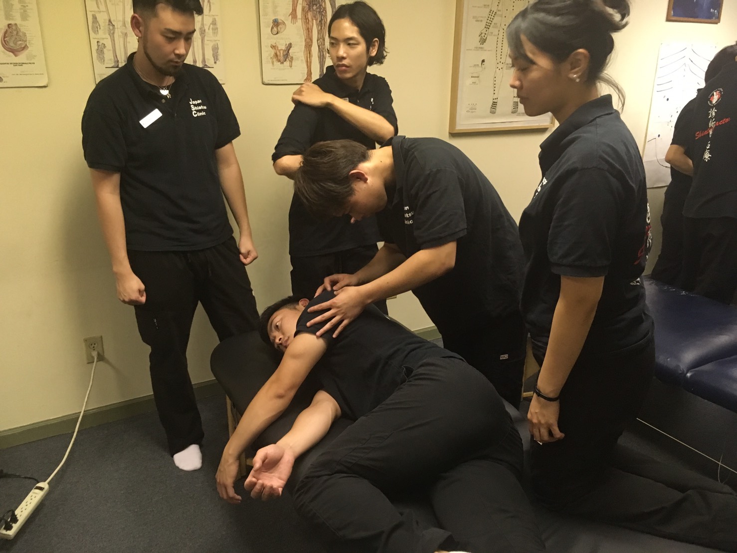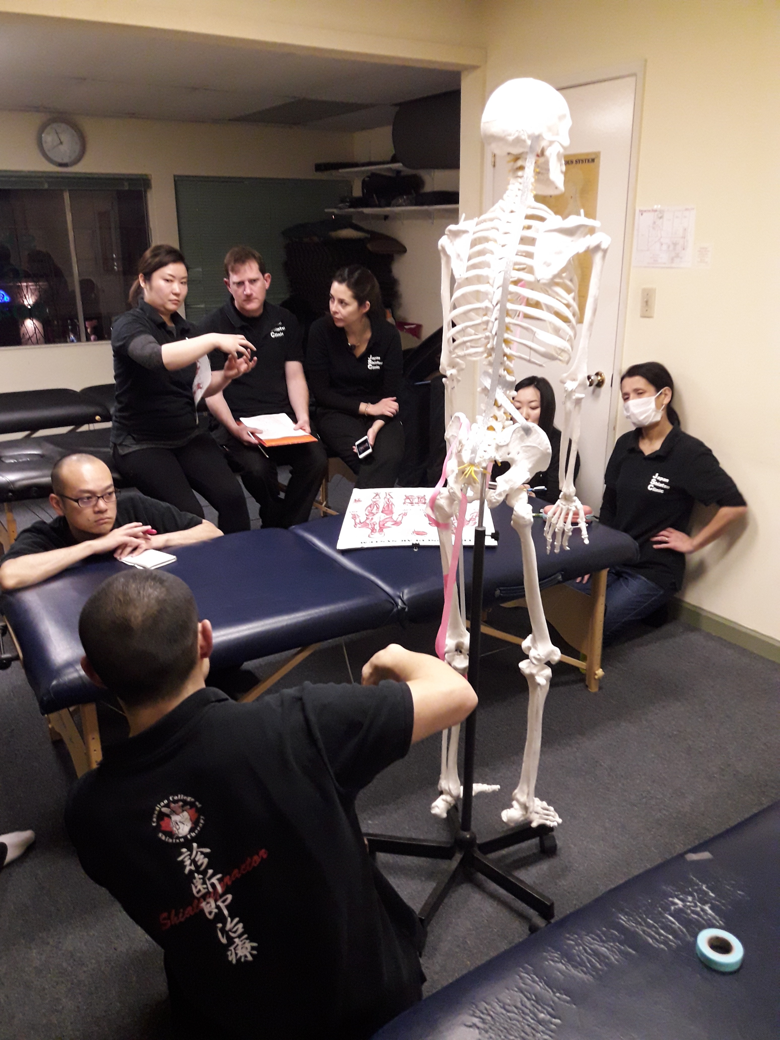 We had Haruka Ogata Sensei, she is an instructor and therapist with Canadian College of Shiatsu Therapy. She taught about treatment of pregnant women. We studied the initial, middle and final stages of pregnancy. We also studied the contraindications concerning treatment as well as proper treatment positions. We also reviewed practical knowledge and how to apply it in our clinic. (Nobu)